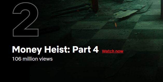 - 2위 종이의 집 파트4: 1억 600만 뷰