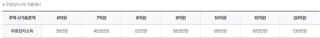 2-4) 무료임차소득: 자녀 소유의 고가 주택에 거주하는 본인 또는 배우자에 대하여 임차료에 상응하여 소득으로 인정하는 금액